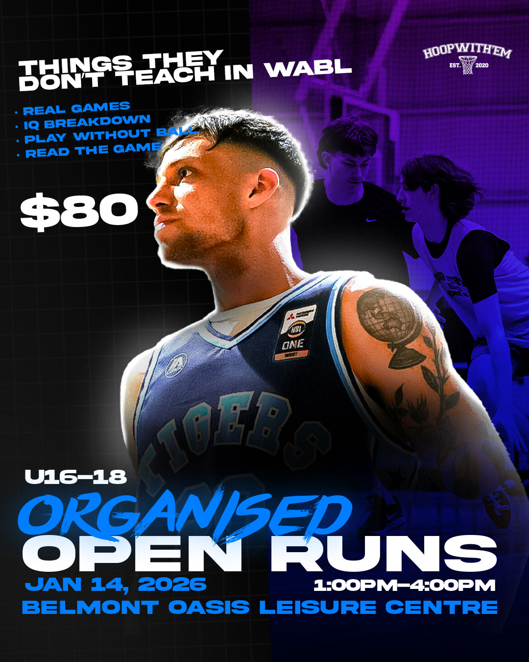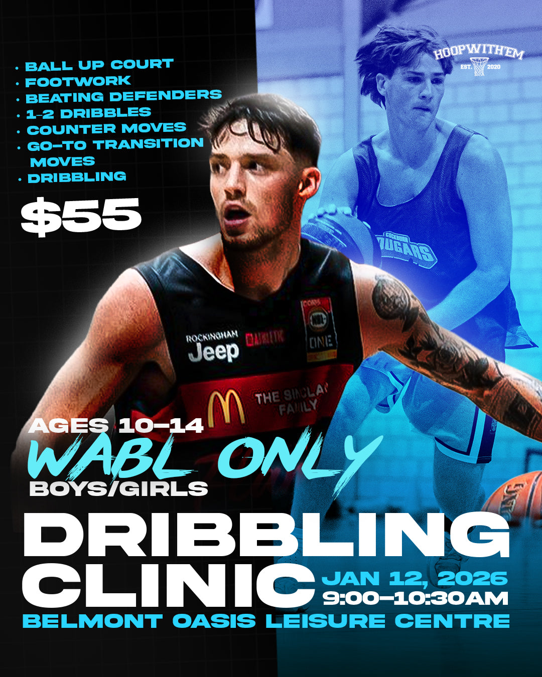 Our Hoopwith’em WABL Holiday Camps offer a mix of general all-round camps and specialist breakdown camps, exclusively for WABL athletes. Each camp is designed to push players, develop real game skills, and give them a high-level experience during the school holidays.